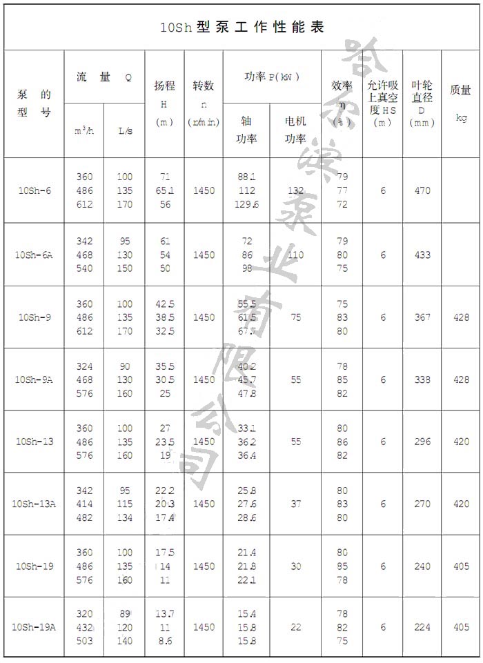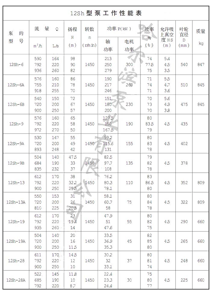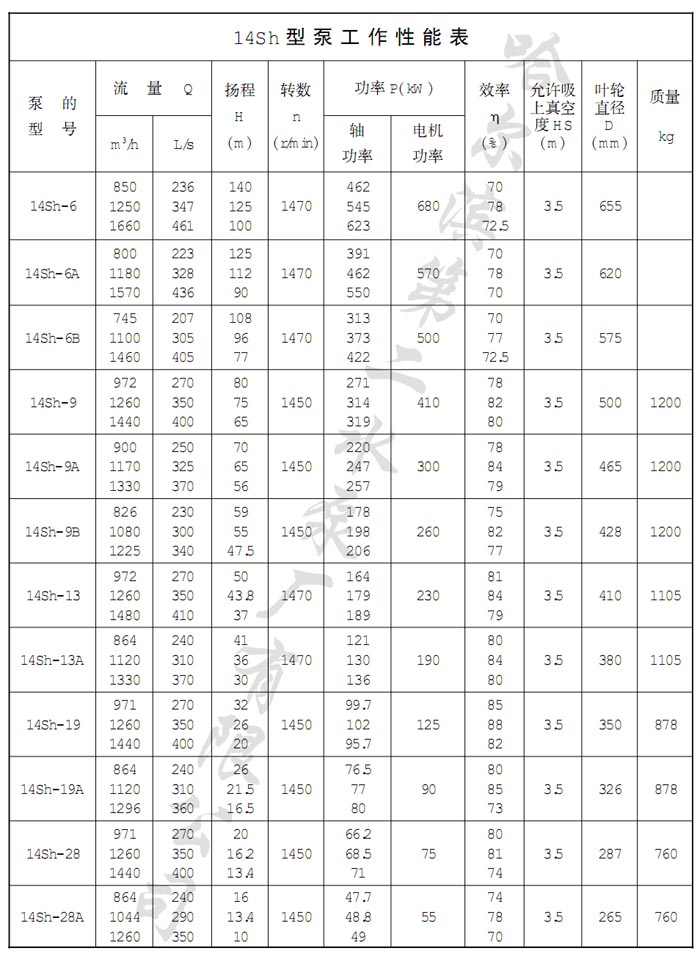 Sh型輸送介質(zhì)的最高溫度不得超過(guò)80℃。適用于工廠(chǎng)、礦山、城市給水、電站、大型水利工程、農田灌溉和排澇等。